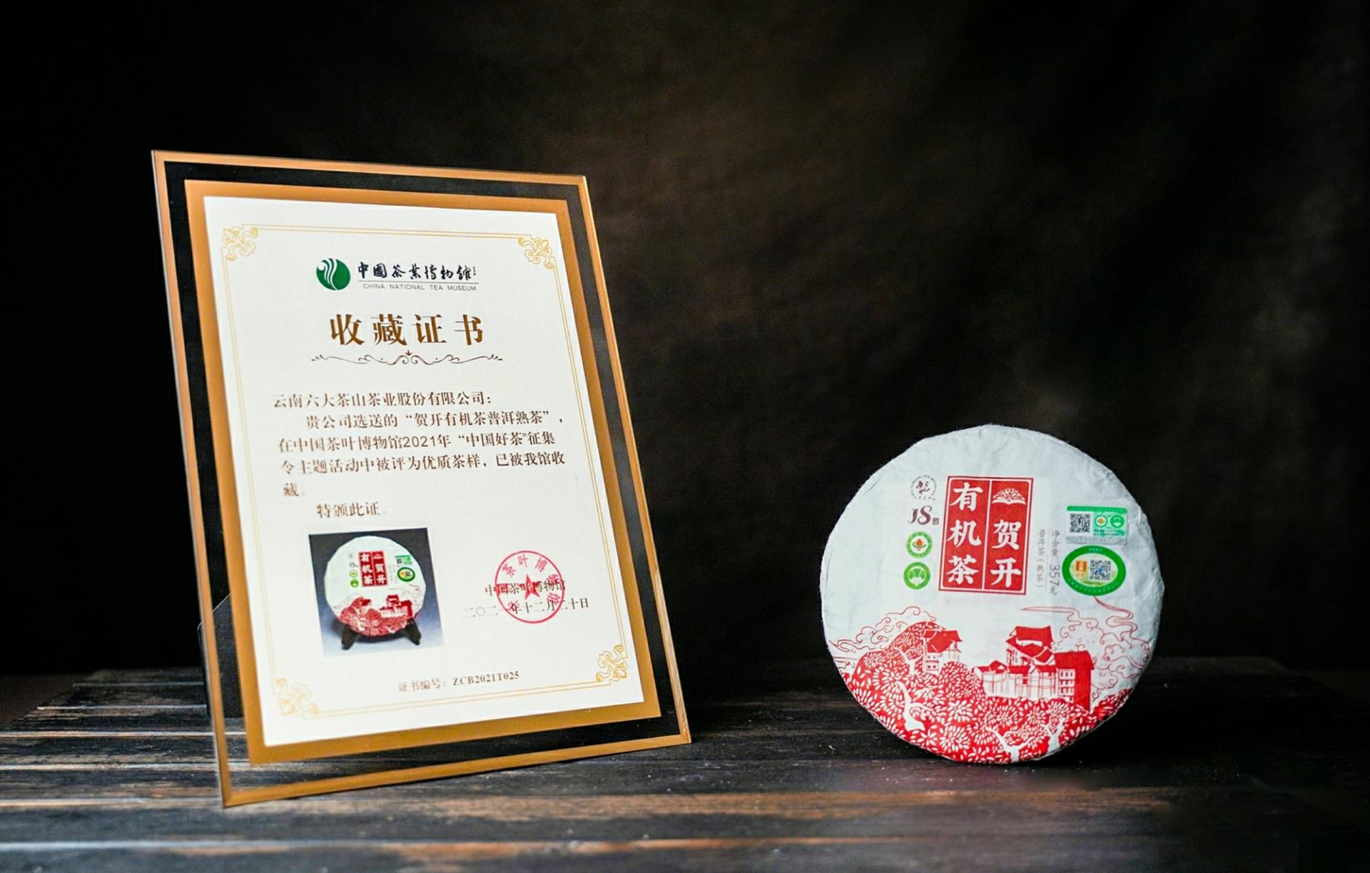 六大茶山“賀開有機(jī)茶普洱茶熟茶”被中國茶葉博物館收藏,并頒布收藏證明!